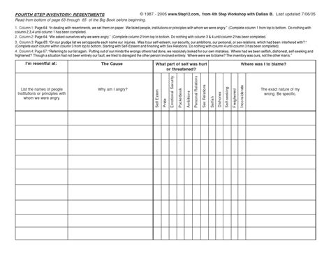 Worksheets are resentment inventory prompt, first step work, step made a searching and fearless moral inventory of, aas 12. Web here is a brief 4th step guide using the four charts contained in the worksheet. Web these worksheets were compiled from existing and commonly used step four pdf and word docs found on the web.